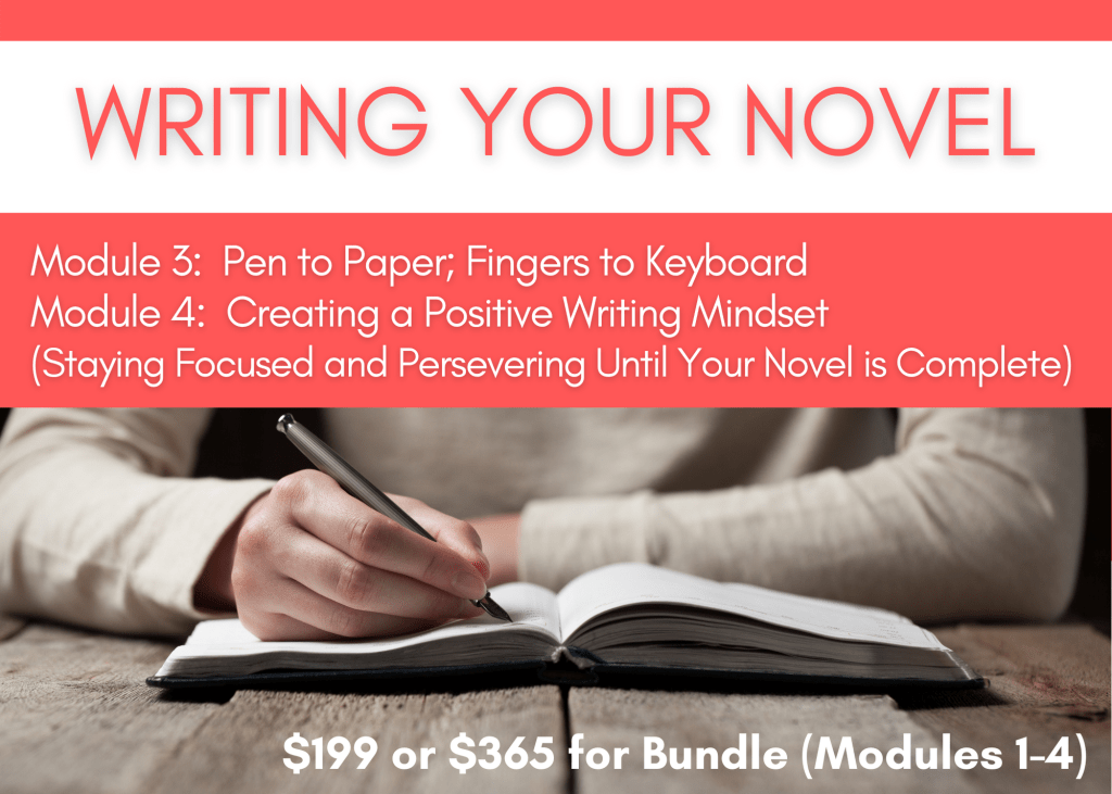 Where are you in your writing journey? Do you have one, two, (more?) novels that you’ve excitedly started writing only to be sidetracked or derailed? Module 3 and 4 pushes you through the steps to completing your “baby” and making your dream a reality.